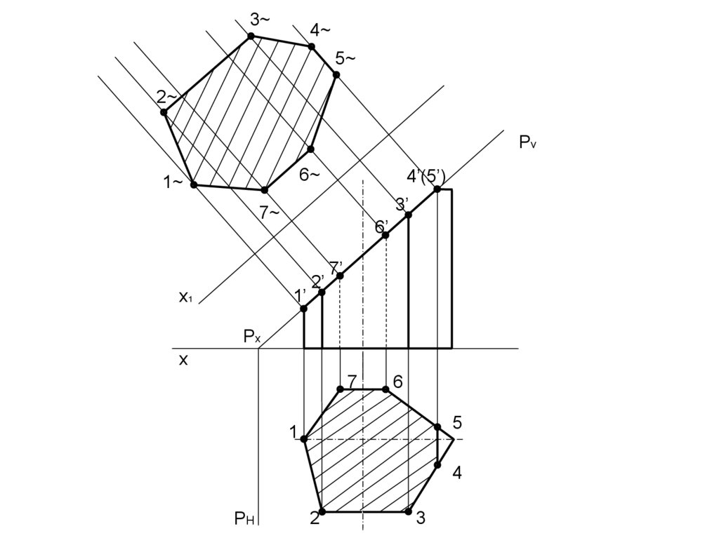 Определение натуральных размеров и площади сечения многогранника наклонной плоскостью