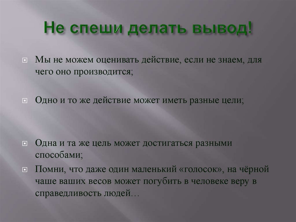 Мы не можем оцениватьдействие, если не знаем, для чего
