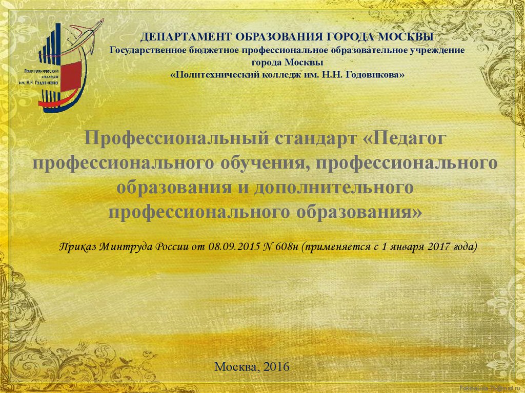 ДЕПАРТАМЕНТ ОБРАЗОВАНИЯ ГОРОДА МОСКВЫГосударственное бюджетное профессиональное образовательное учреждение