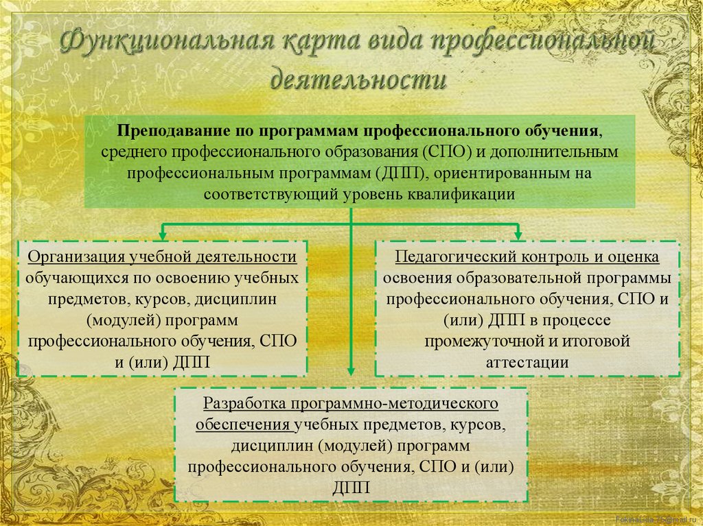 Преподавание по программам профессионального обучения,среднего профессионального образования (СПО) и дополнительным