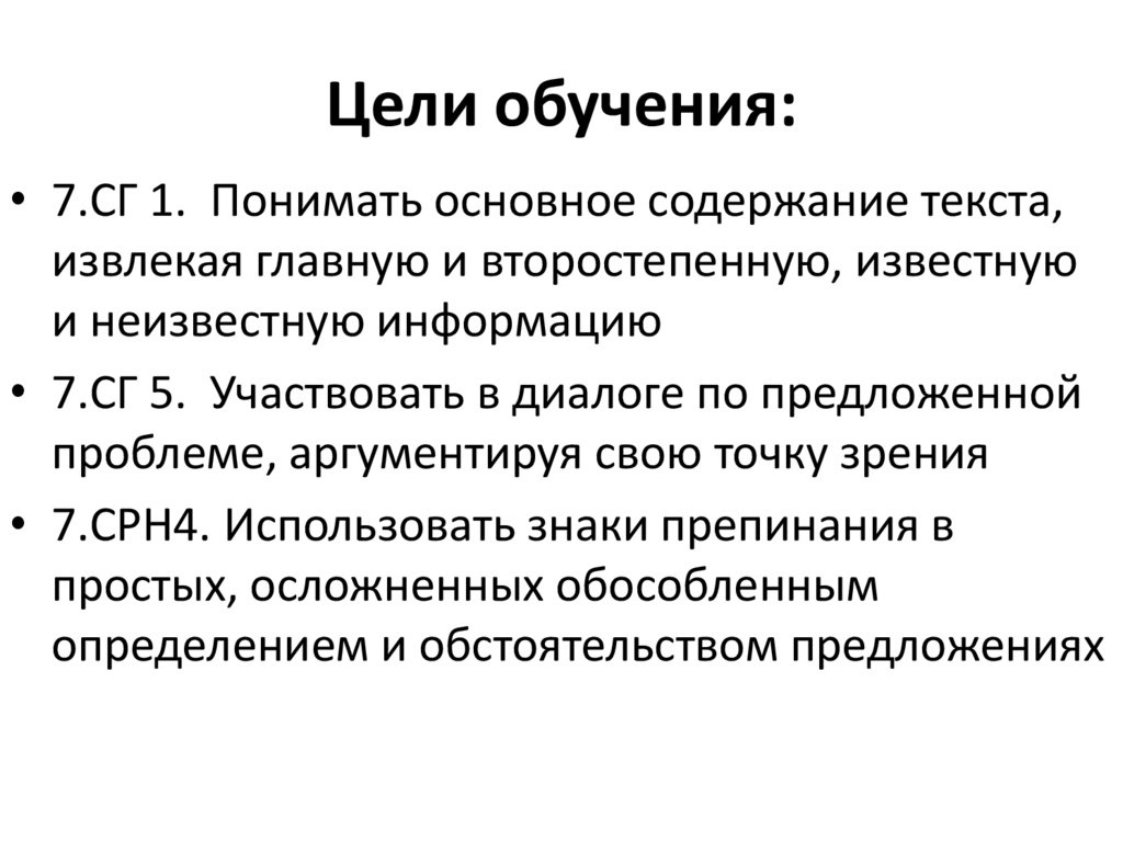 Цели обучения:• 7.СГ 1. Понимать основное содержание текста,