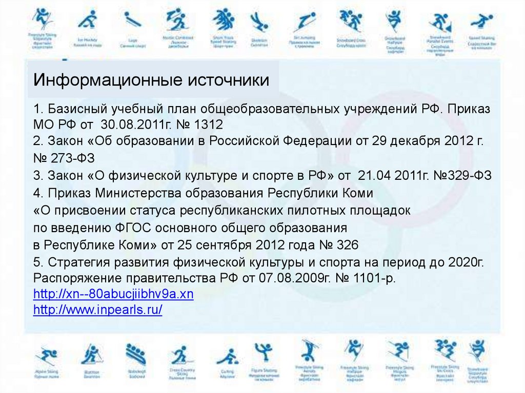 Информационные источники1. Базисный учебный план общеобразовательных учреждений РФ. Приказ