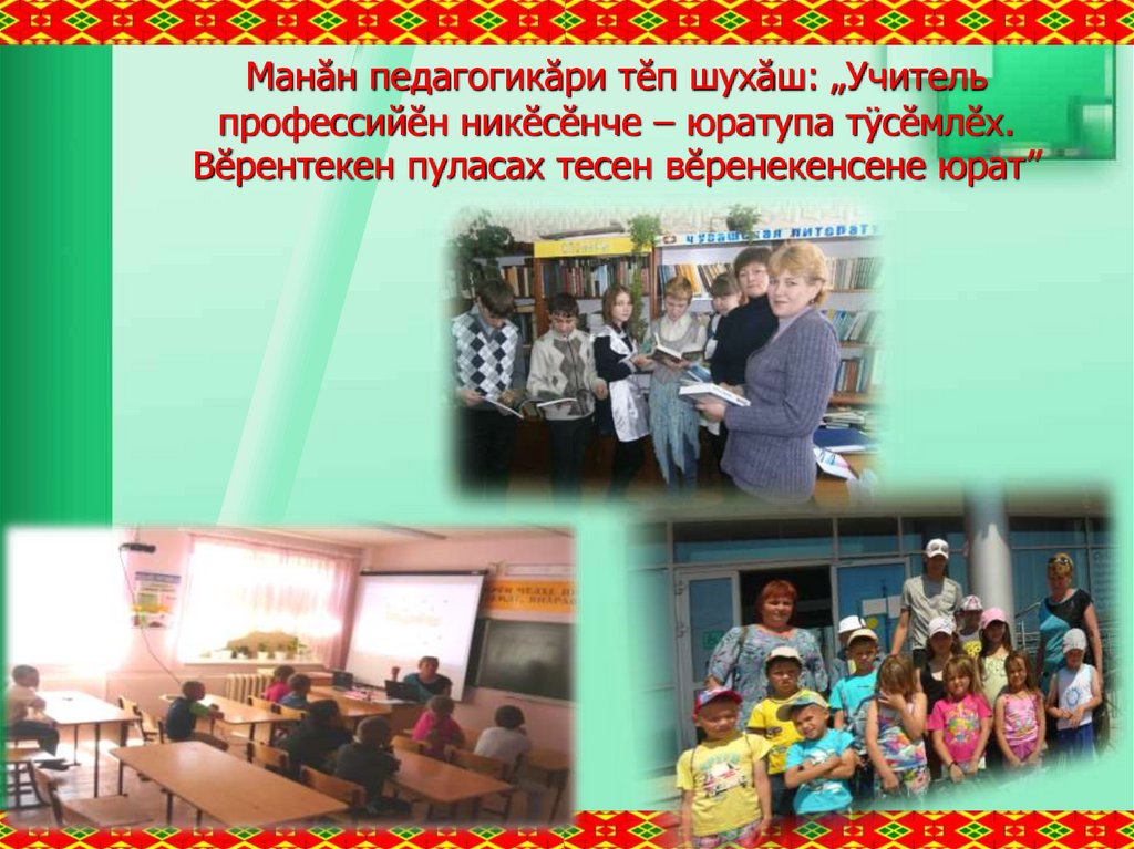 Манăн педагогикăри тĕп шухăш: „Учительпрофессийĕн никĕсĕнче – юратупа тÿсĕмлĕх.