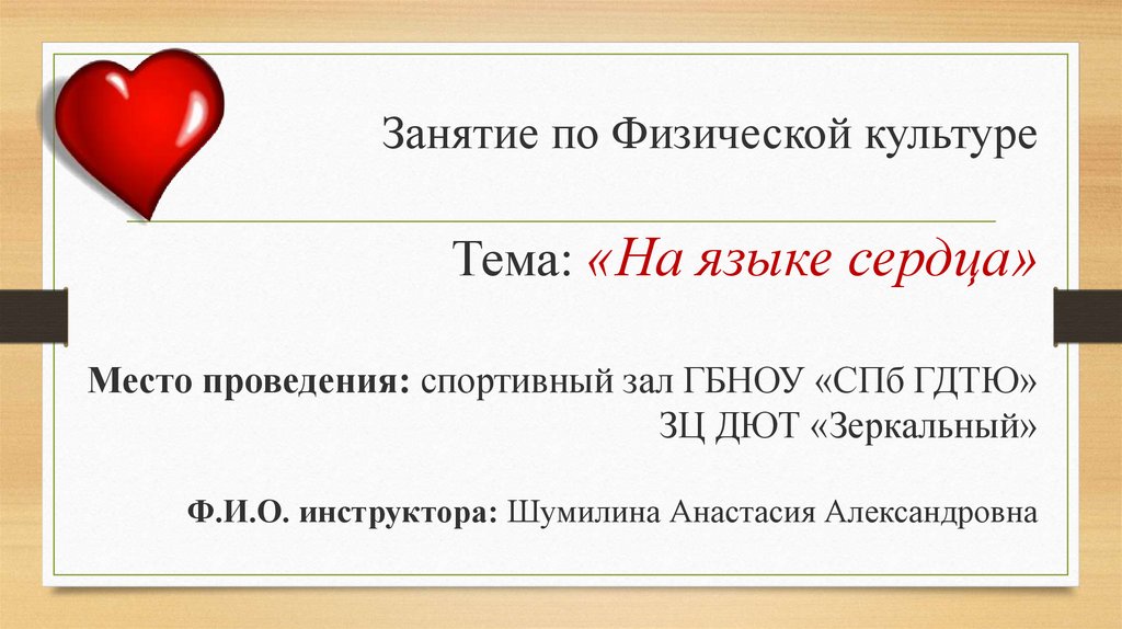 Занятие по Физической культуреТема: «На языке сердца»
