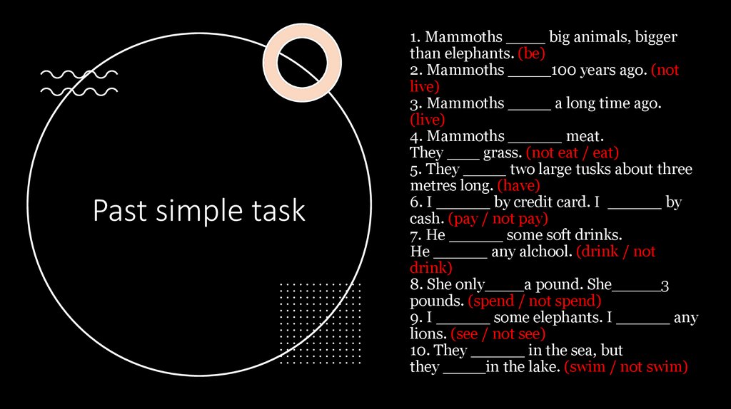 Past simple task1. Mammoths ____ big animals, bigger