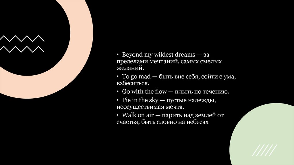 • Beyond my wildest dreams — запределами мечтаний, самых смелых