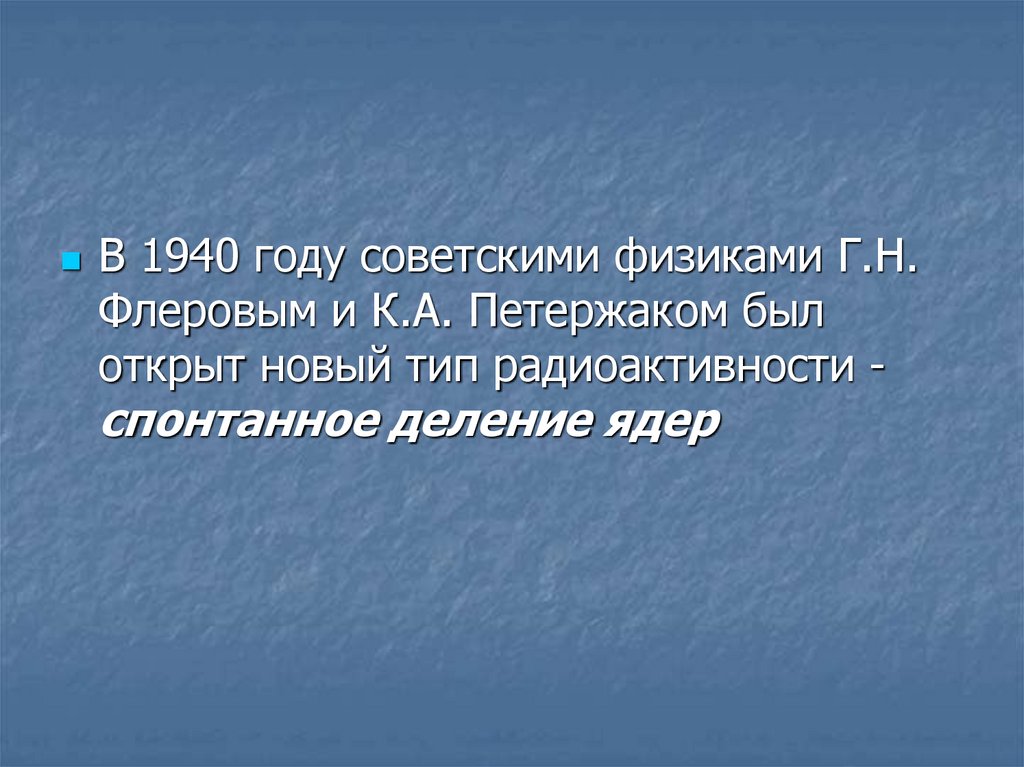 В 1940 году советскими физиками Г.Н.Флеровым и К.А. Петержаком был