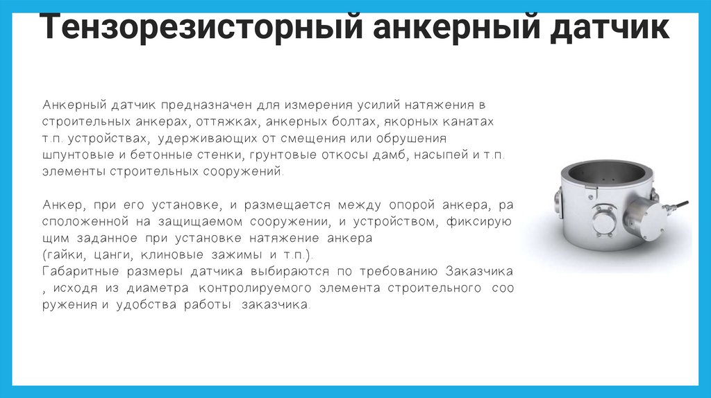 Тензорезисторный анкерный датчикАнкерный датчик предназначен для измерения усилий натяжения в