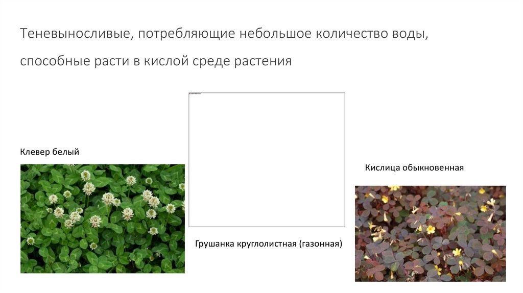 Теневыносливые, потребляющие небольшое количество воды,способные расти в кислой среде растения
