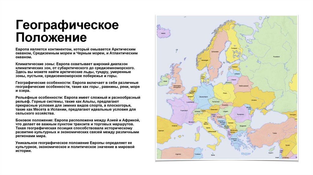 Рельефные особенности: Европа имеет сложный и разнообразный
