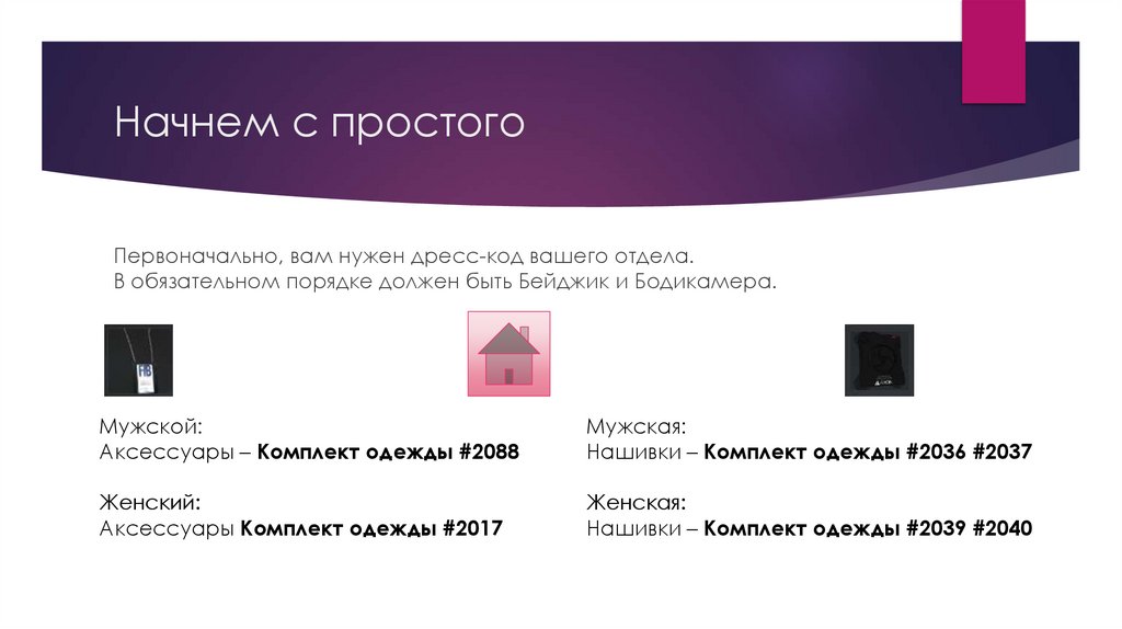 Начнем с простогоПервоначально, вам нужен дресс-код вашего отдела.