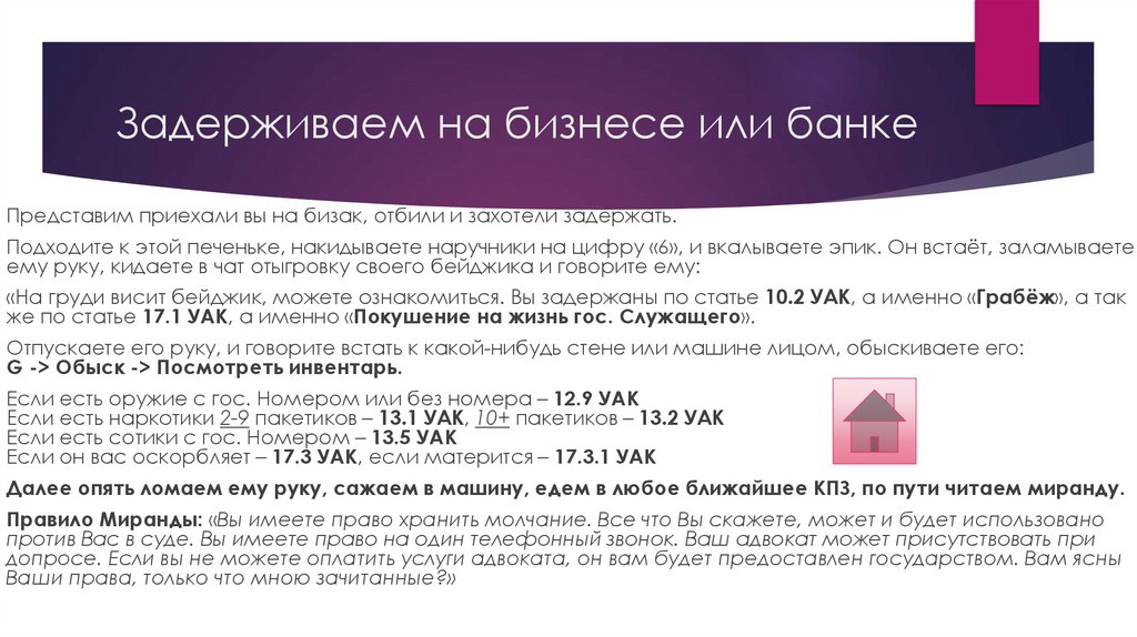 Задерживаем на бизнесе или банкеПредставим приехали вы на бизак, отбили и захотели задержать.