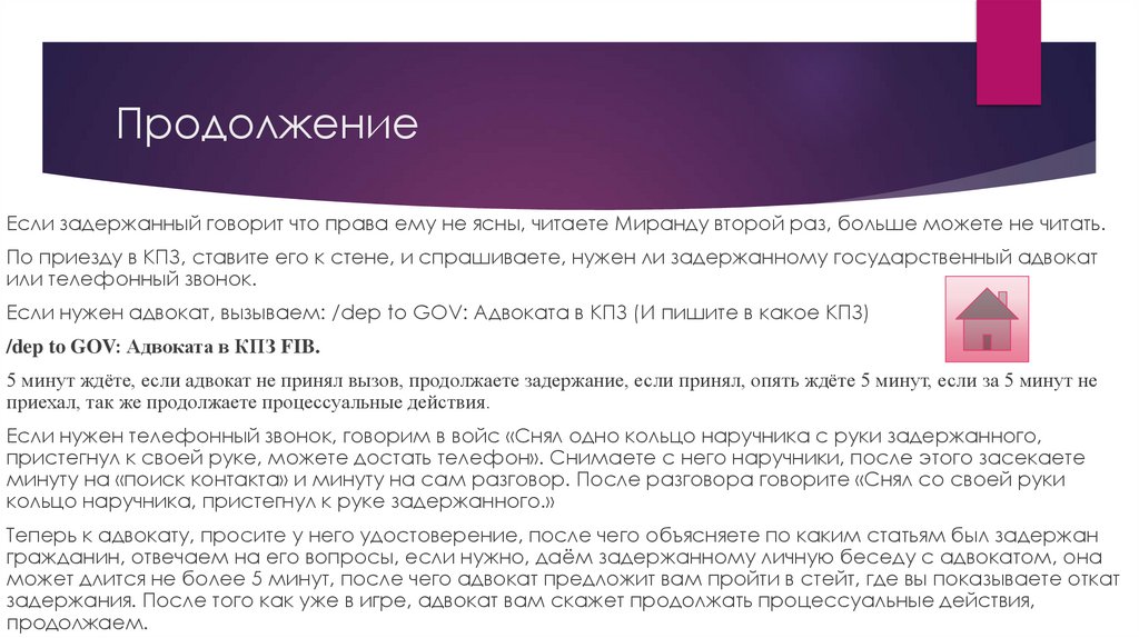 ПродолжениеЕсли задержанный говорит что права ему не ясны, читаете Миранду второй раз, больше можете не читать.