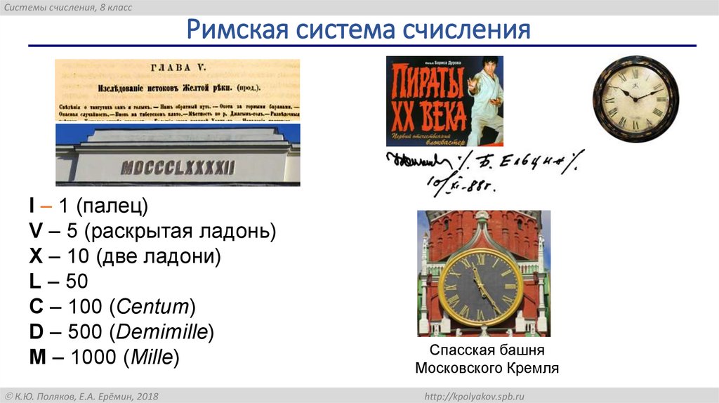 Системы счисления, 8 классРимская система счисления