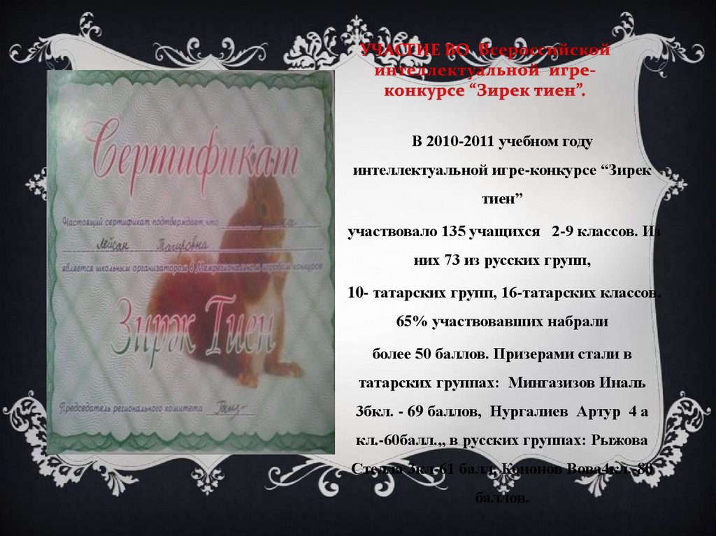 интеллектуальной игре-конкурсе “Зирек