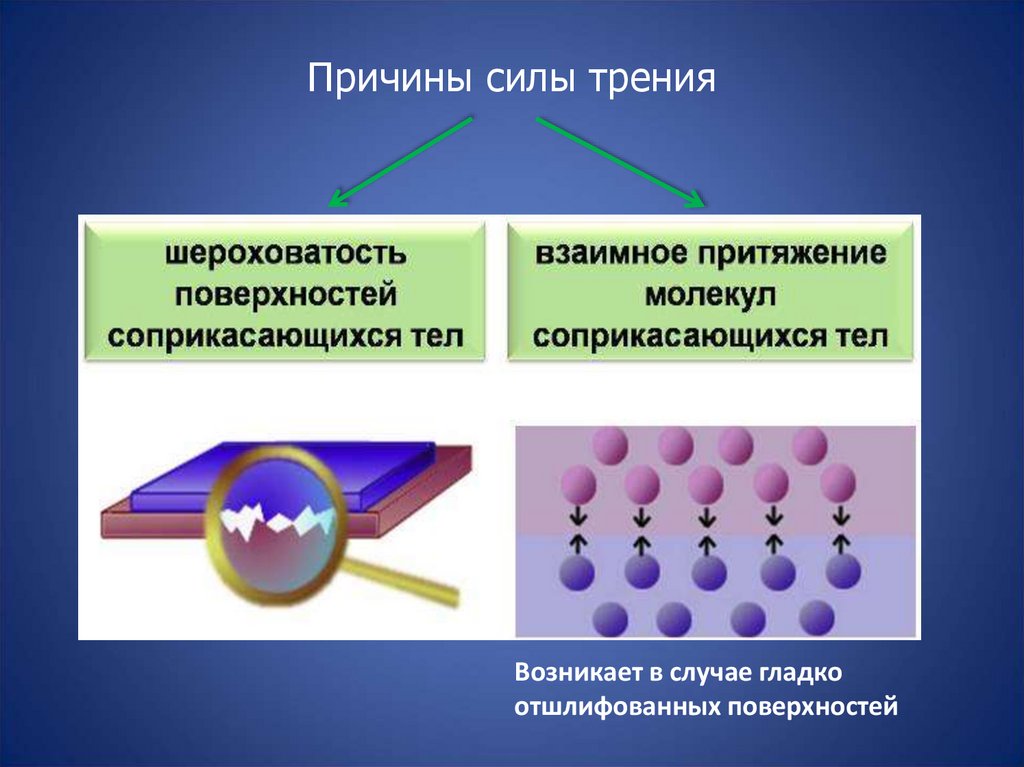1. Когда возникает сила трения?2. Причины возникновения силы трения.