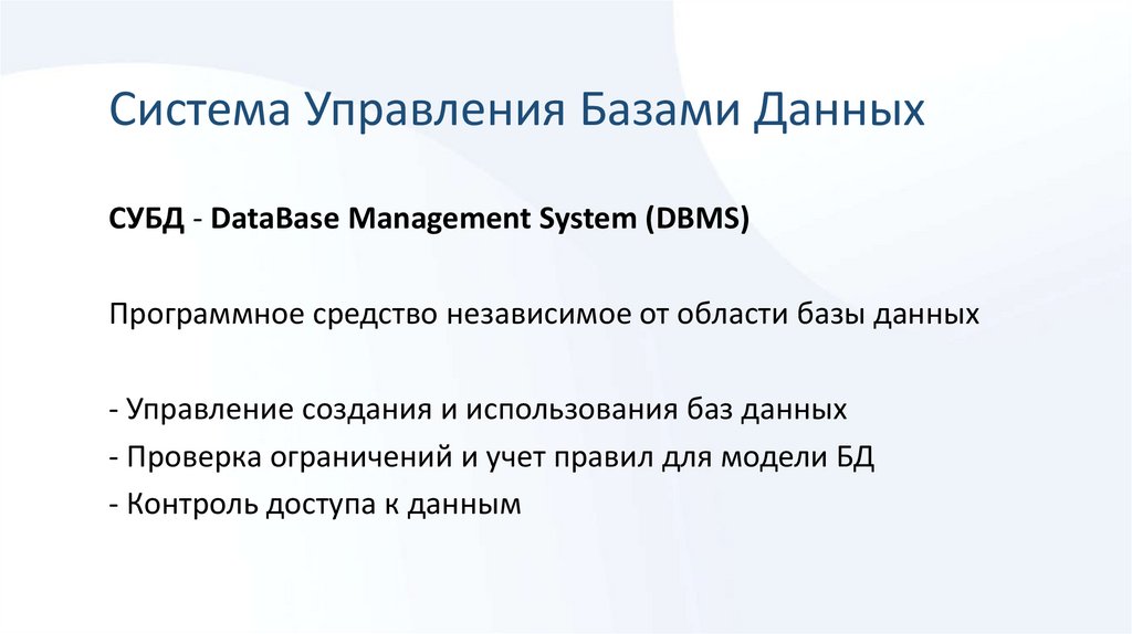 Система Управления Базами ДанныхСУБД - DataBase Management System (DBMS)