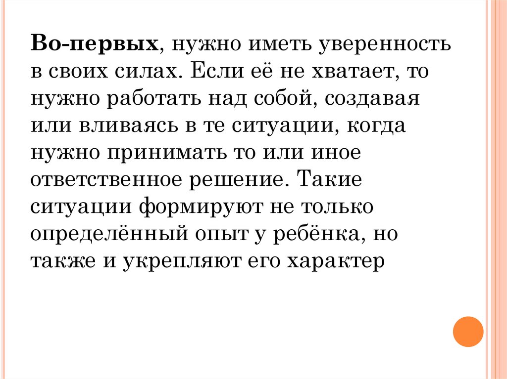 Во-первых, нужно иметь уверенностьв своих силах. Если её не хватает, то