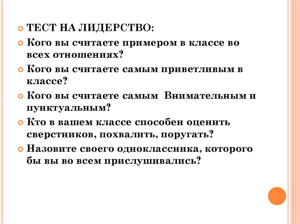 ТЕСТ НА ЛИДЕРСТВО:Кого вы считаете примером в классе во