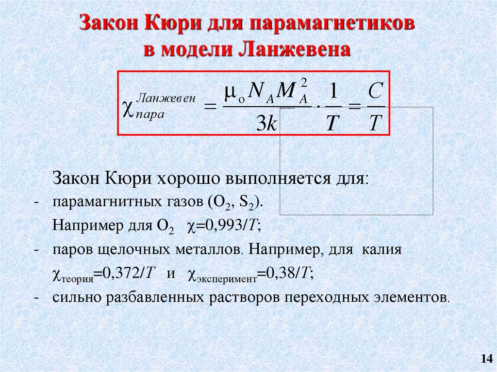 Закон Кюри –ВейссаВейсс ввел в модель Ланжевена учет взаимодействия –