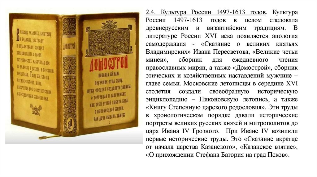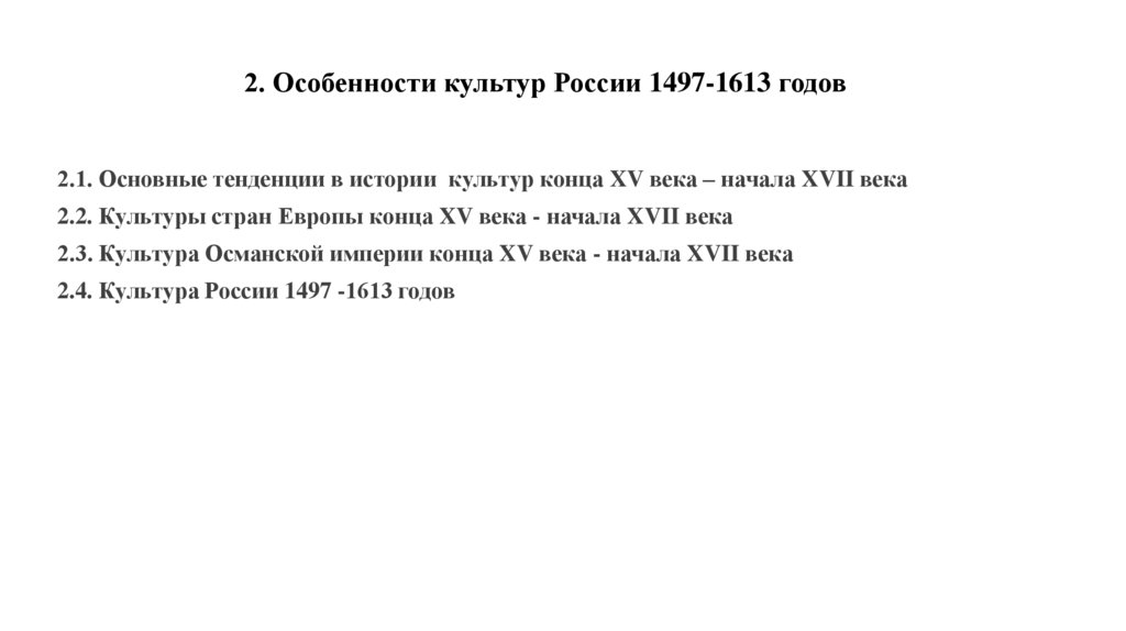 свидетельствовали потрясения Российского общества в Смутное время. Культура России 14971613 годов в основном ориентировалась на древнерусские и византийские традиции, но на неё