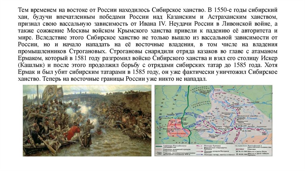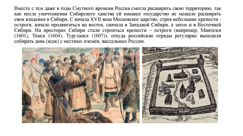 Вместе с тем даже в годы Смутного времени Россия смогла расширить свою территорию, таккак после уничтожения Сибирского ханства ей никакое государство не мешало расширять