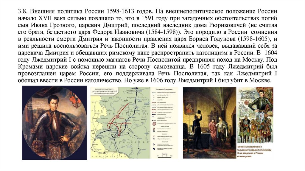 3.8. Внешняя политика России 1598-1613 годов. На внешнеполитическое положение Россииначало XVII века сильно повлияло то, что в 1591 году при загадочных обстоятельствах погиб