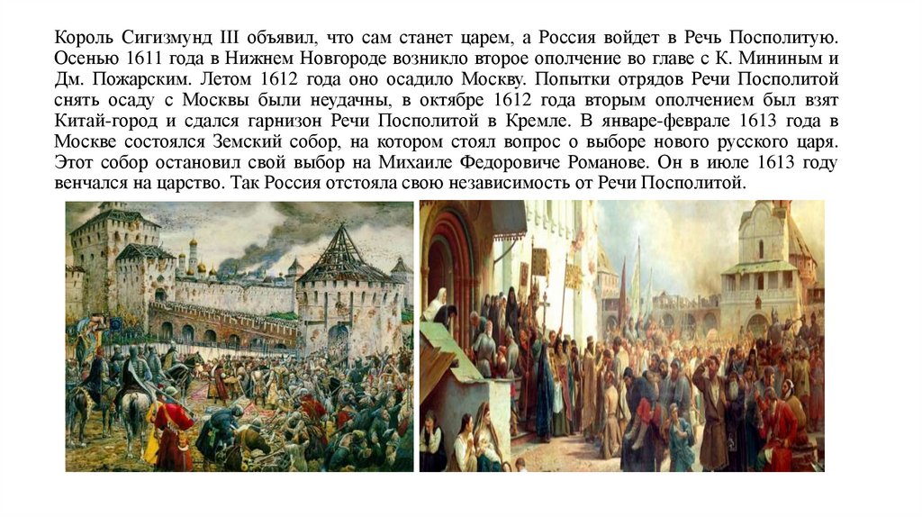 венчался на царство. Так Россия отстояла свою независимость от Речи Посполитой.