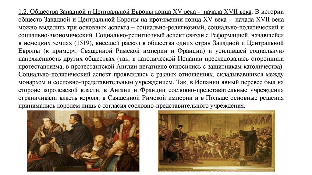 1.2. Общества Западной и Центральной Европы конца XV века - начала XVII века. В историиобществ Западной и Центральной Европы на протяжении конца XV века - начала XVII века