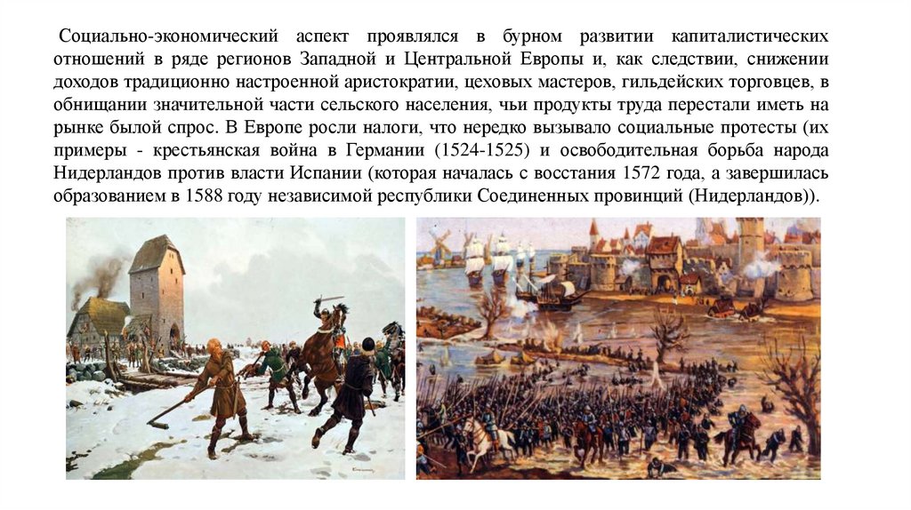 Социально-экономический аспект проявлялся в бурном развитии капиталистическихотношений в ряде регионов Западной и Центральной Европы и, как следствии, снижении