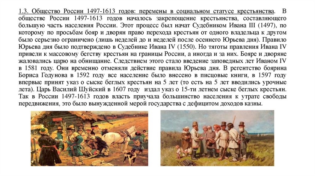 1.4. Общество России 1497- 1613 годов: перемены в социальном статусе крестьянства