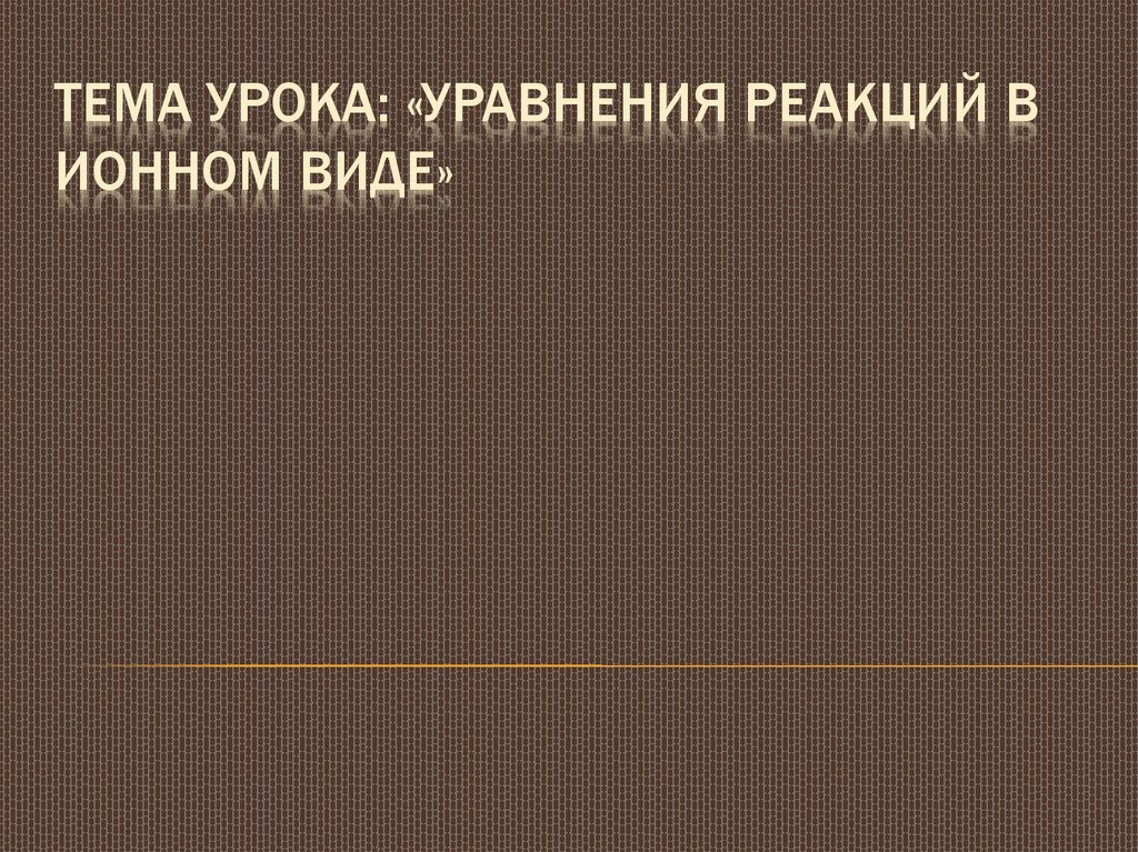 ТЕМА УРОКА: «УРАВНЕНИЯ РЕАКЦИЙ ВИОННОМ ВИДЕ»