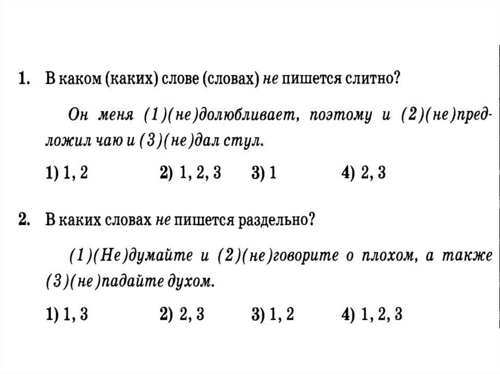 Слитное и раздельное написание не. Тест №3. 5 класс