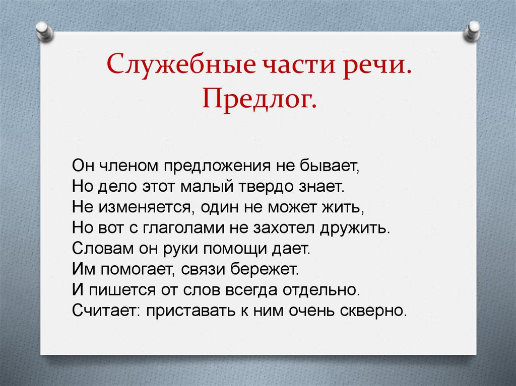 Служебные части речи.Предлог.