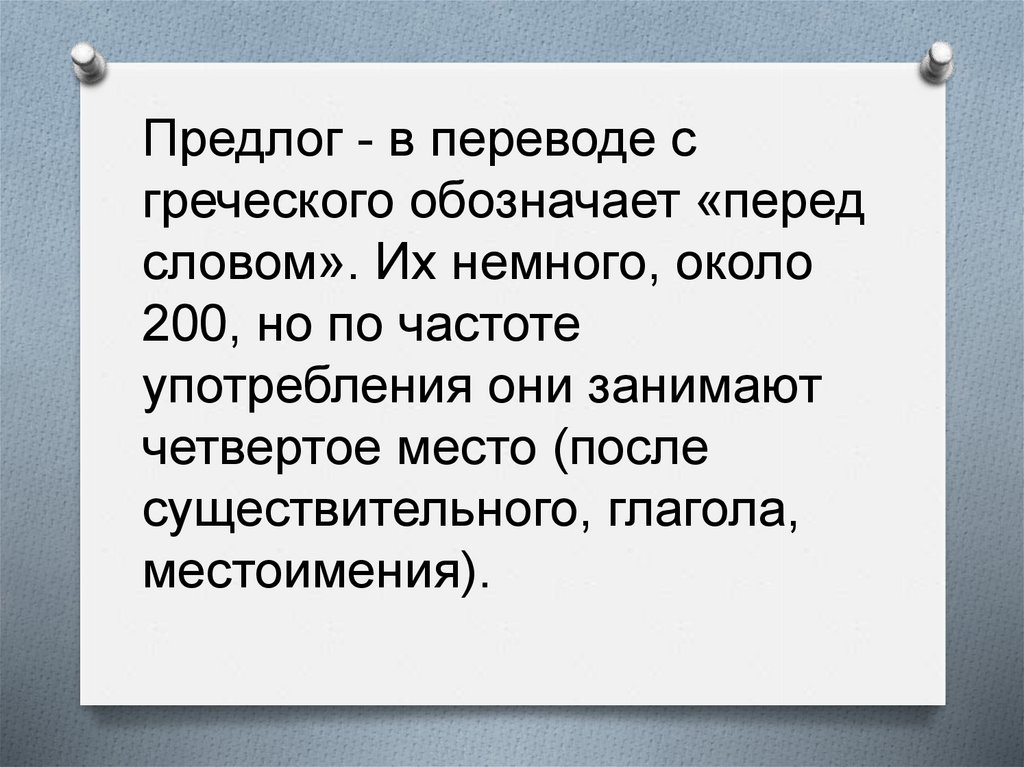 Предлог - в переводе сгреческого обозначает «перед