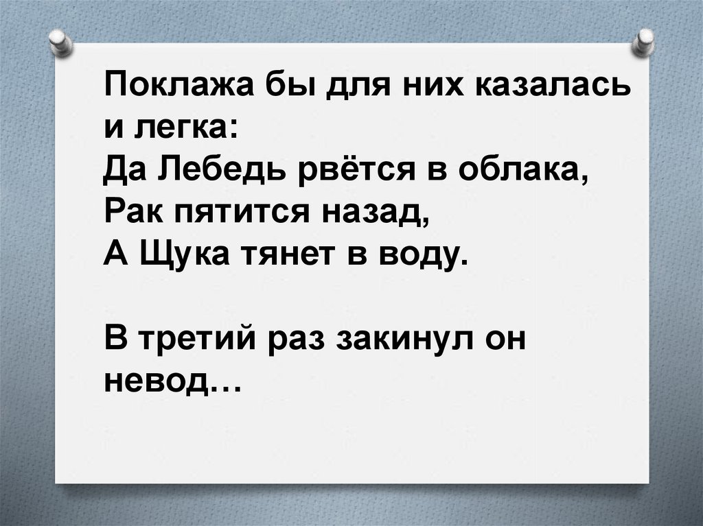 А Щука тянет в воду.
