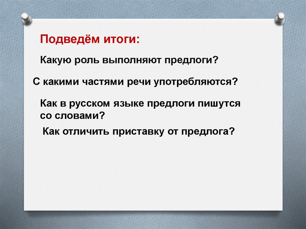 Подведём итоги:Какую роль выполняют предлоги?