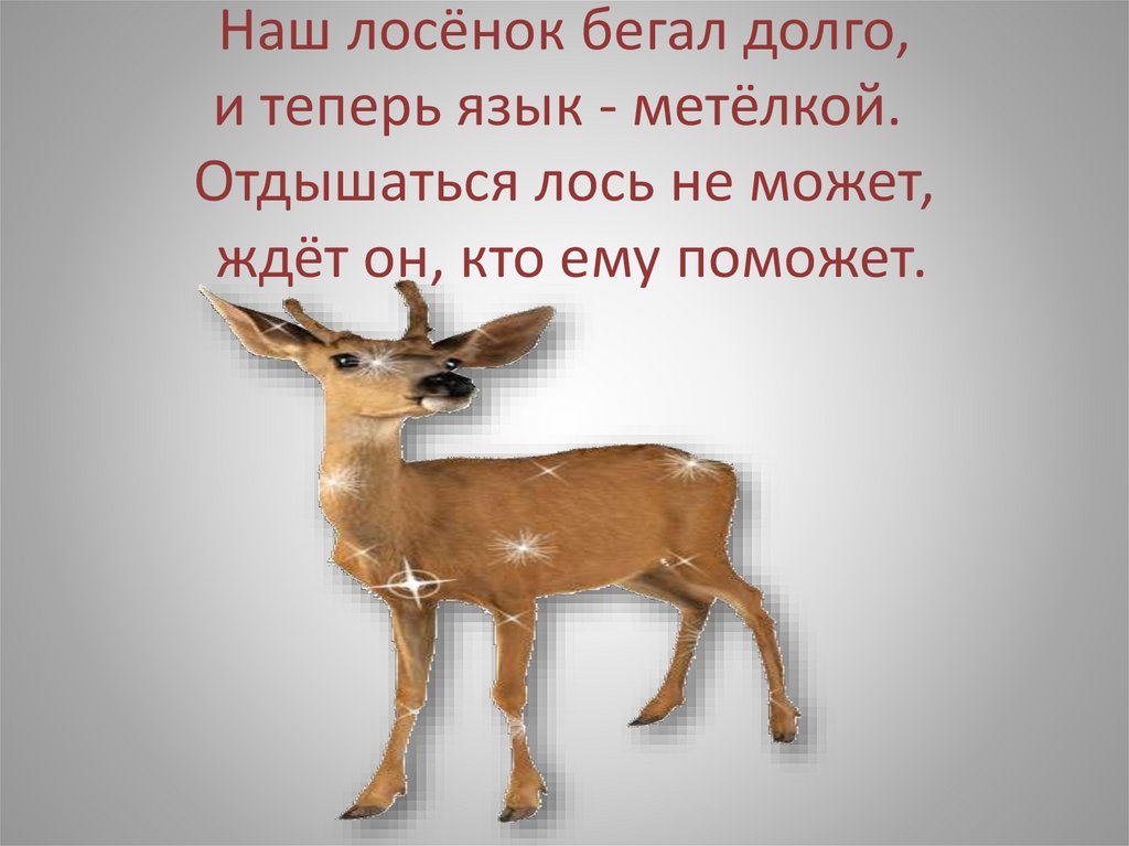 Наш лосёнок бегал долго,и теперь язык - метёлкой.