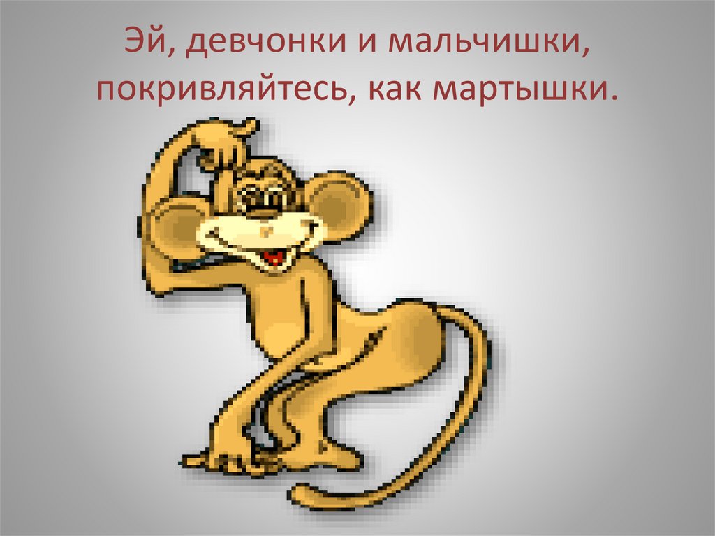 Эй, девчонки и мальчишки,покривляйтесь, как мартышки.