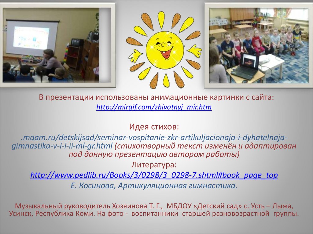 В презентации использованы анимационные картинки с сайта:http://mirgif.com/zhivotnyj_mir.htm