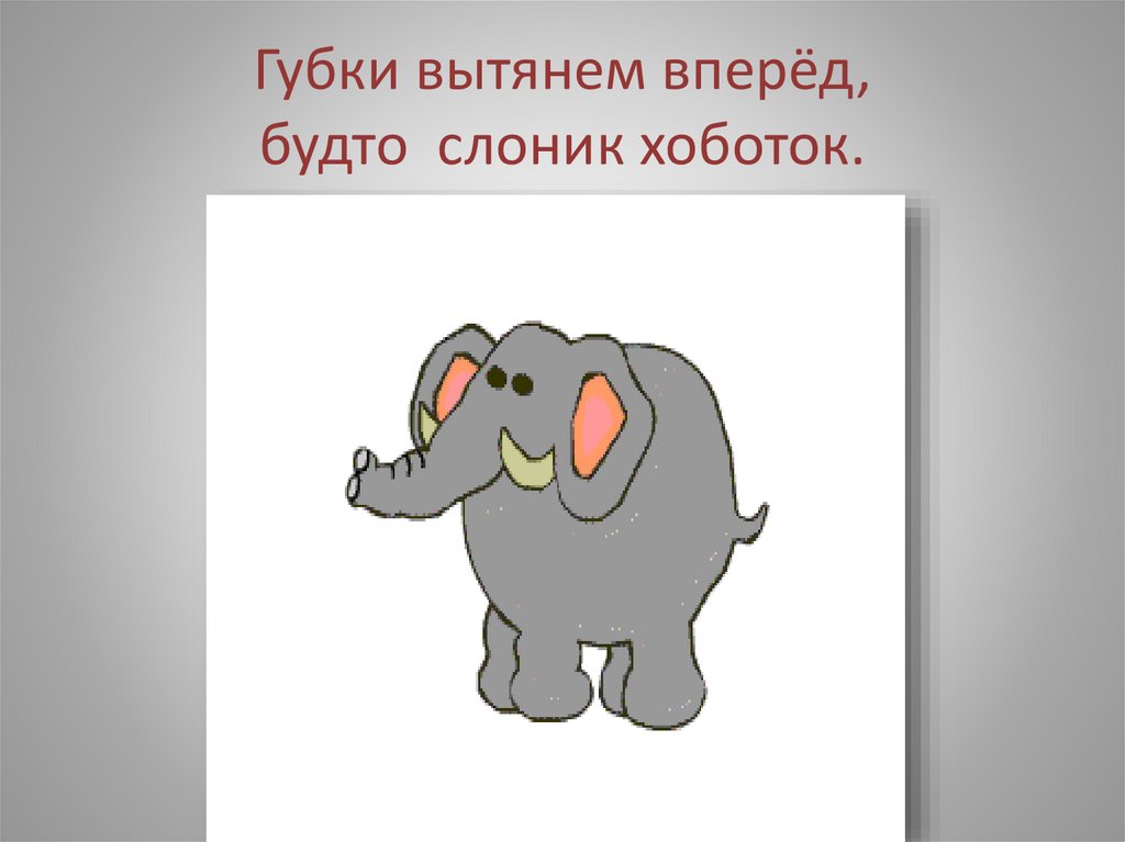 «Слоник» - активно вытягивать губы вперёд «хоботком».