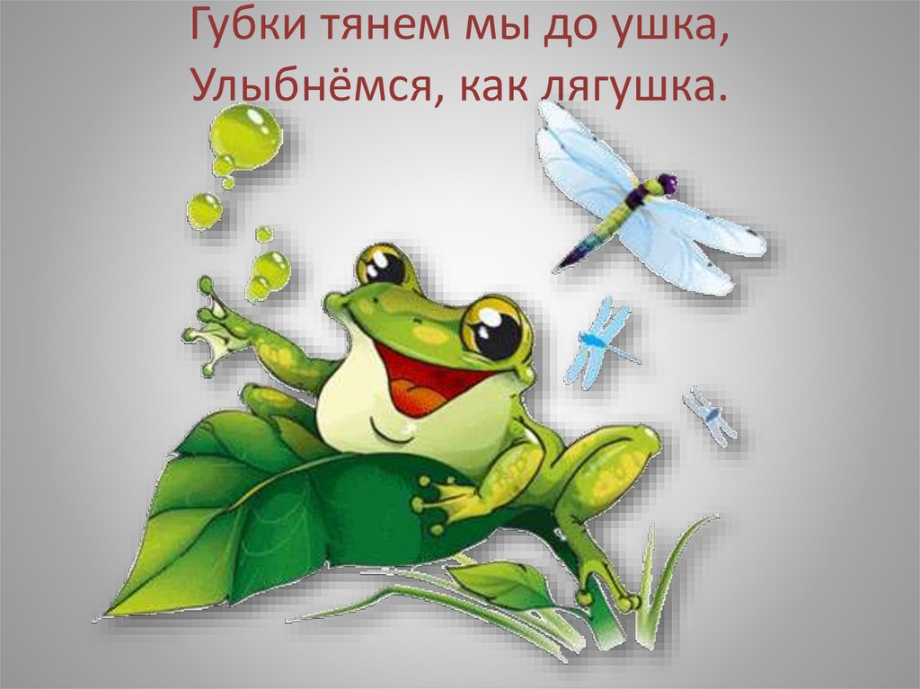 Губки тянем мы до ушка,Улыбнёмся, как лягушка.