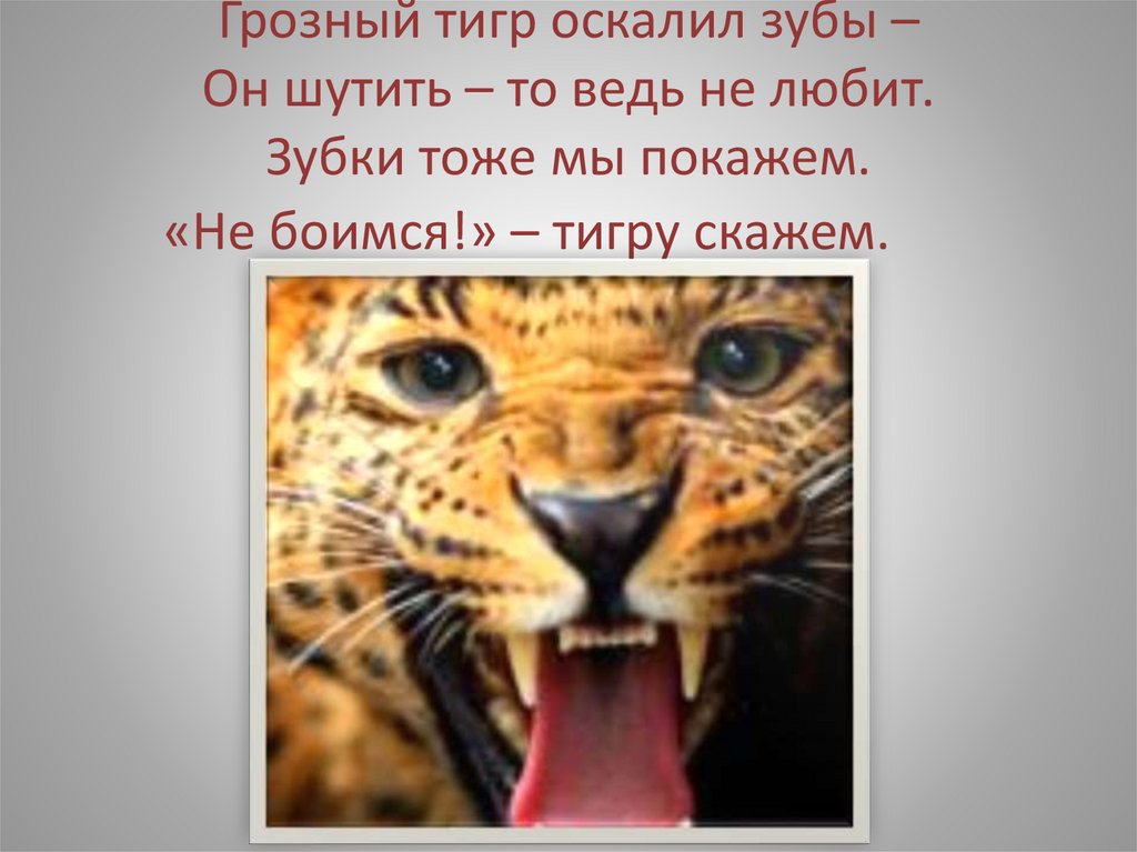 Грозный тигр оскалил зубы –Он шутить – то ведь не любит.
