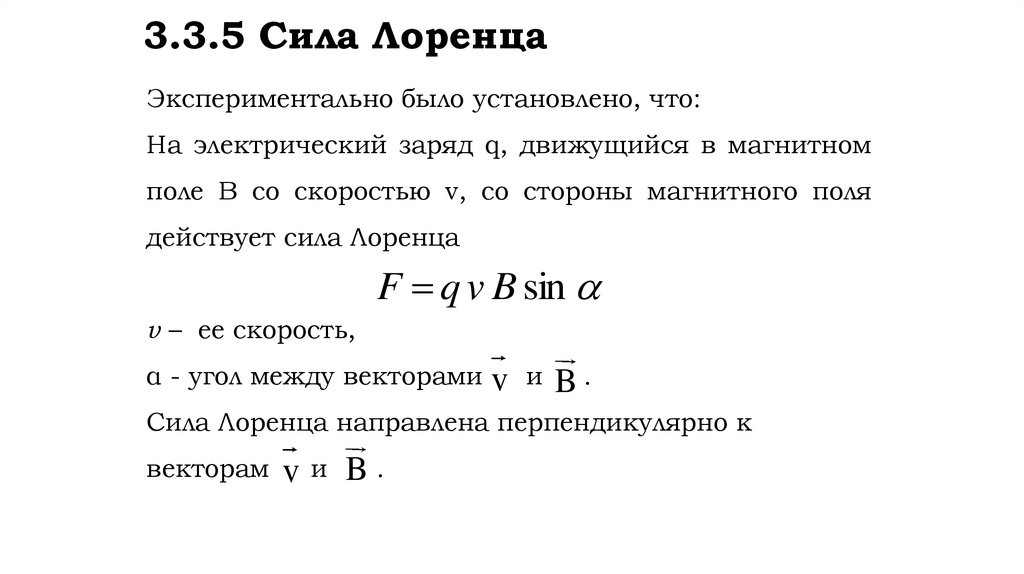 3.3.5 Сила ЛоренцаЭкспериментально было установлено, что: