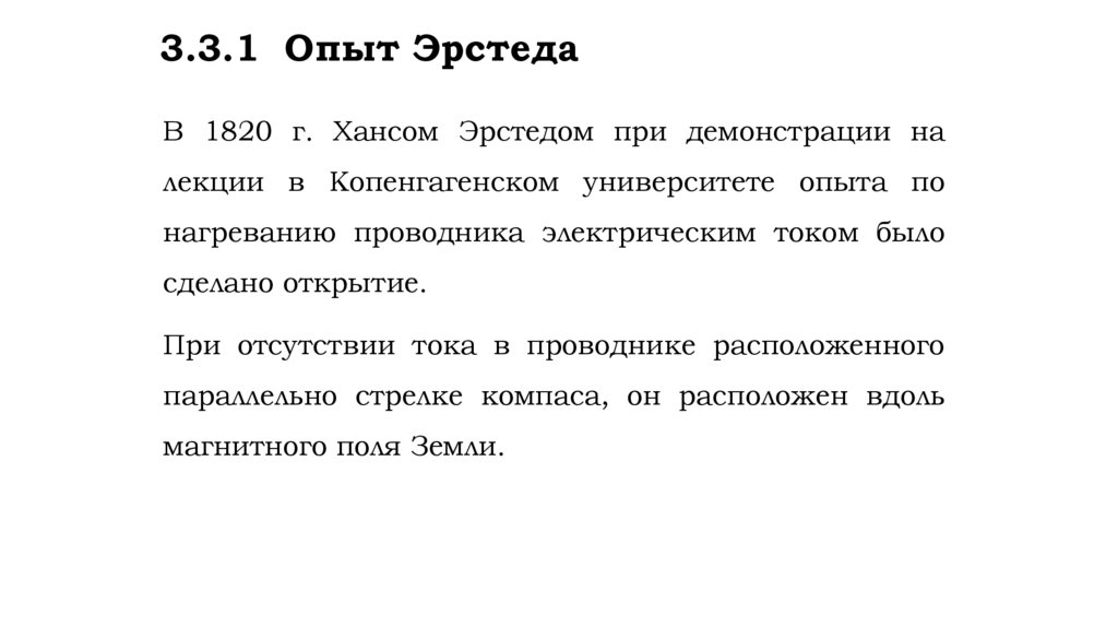 3.3.1 Опыт ЭрстедаВ 1820 г. Хансом Эрстедом при демонстрации на