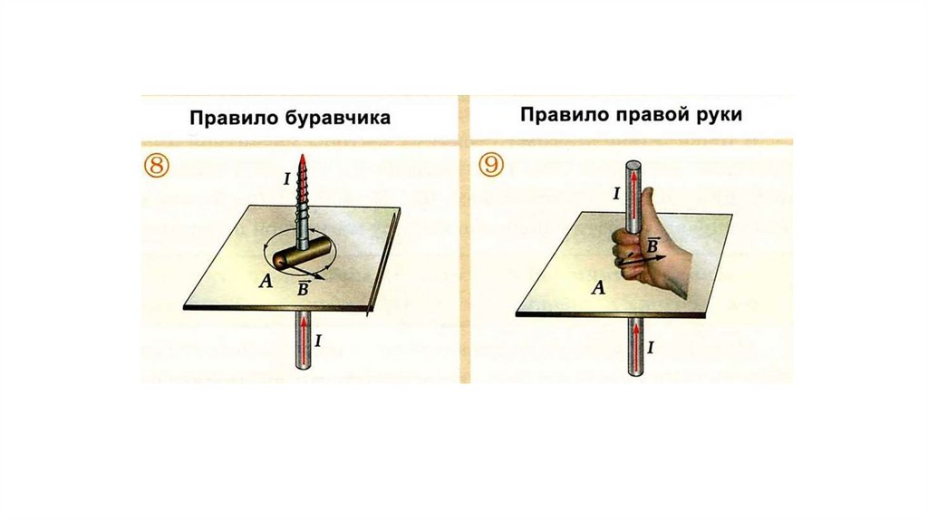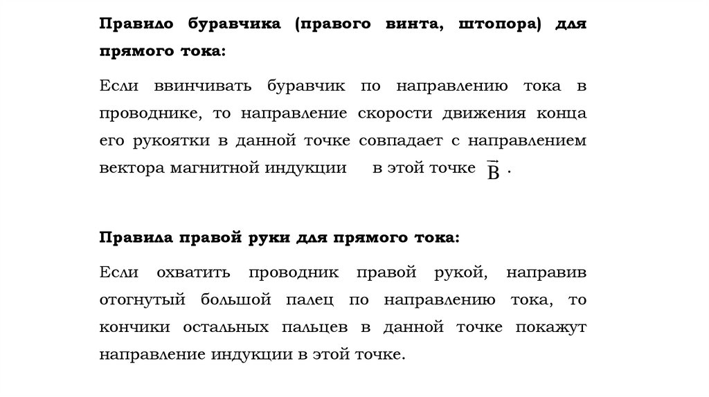 Правило буравчика (правого винта, штопора) дляпрямого тока: