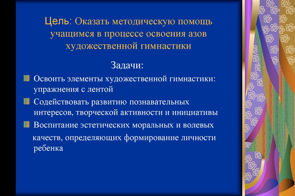 Цель: Оказать методическую помощьучащимся в процессе освоения азов