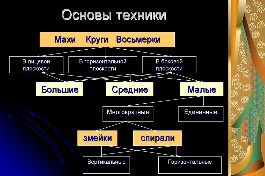 Все махи изучают вначале стоя на месте, затем в сочетаниис различными танцевальными шагами и движениями тела.