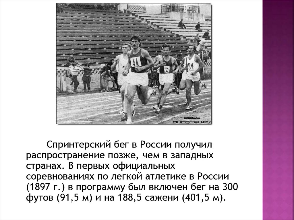 Спринтерский бег в России получилраспространение позже, чем в западных