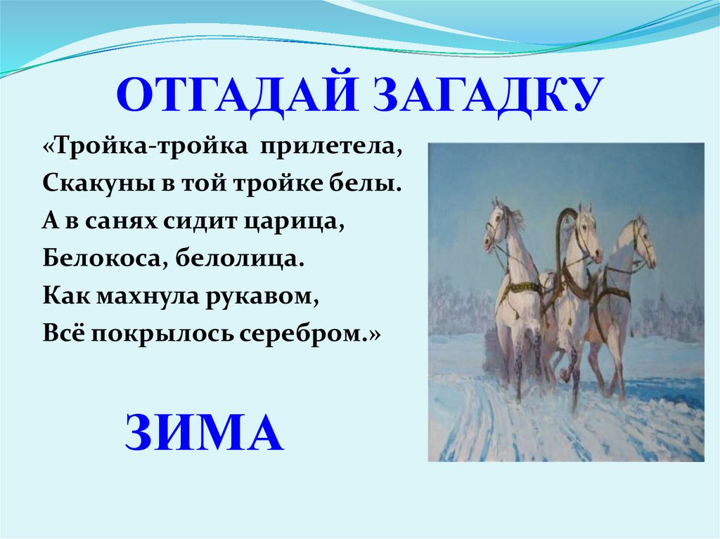 ОТГАДАЙ ЗАГАДКУ«Тройка-тройка прилетела,